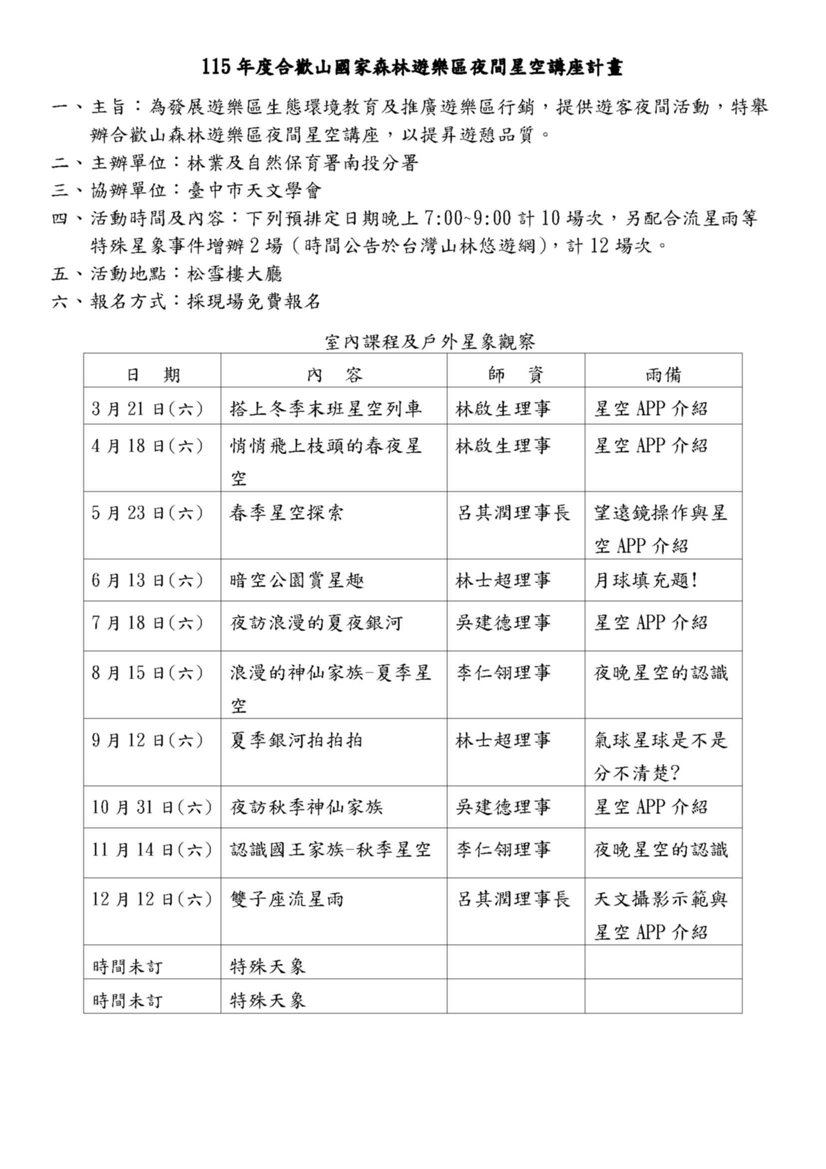 6.松雪樓、滑雪山莊,小年夜、除夕、颱風豪雨或災害暫停住宿外,其它住宿全年無休。