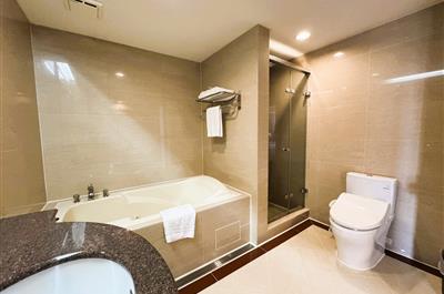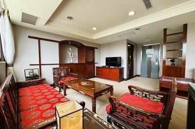 京都套房洋溢著濃厚的人文藝術氣息,空間中點綴著中式家飾與藝品,展現雅緻含蓄的東方美學。大器的格局設計,將臥室與客廳空間巧妙區隔,提升居住的舒適度與私密感,同時帶來多層次的空間節奏。備有兩間衛浴,方便同行旅客使用,無論休憩、閱讀或聊天談心,皆能自在沉靜地享受每一刻。